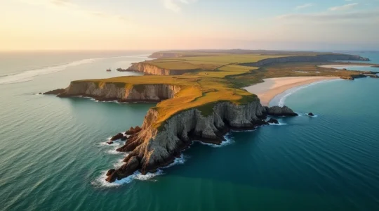 La presqu’île de Crozon incarne l’une des configurations géographiques les plus singulières de la côte atlantique française. Avancée rocheuse s’étendant dans la mer d’Iroise, elle dessine une croix naturelle dont chaque branche révèle des paysages côtiers d’une intensité remarquable : falaises abruptes sculptées par les éléments, plages aux eaux translucides nichées dans des anses protégées, landes battues par les vents où la végétation rase s’accroche au relief. Cette position géographique exceptionnelle en fait un territoire où la nature s’exprime avec une force peu commune, attirant chaque année des visiteurs en quête d’authenticité et de grands espaces.