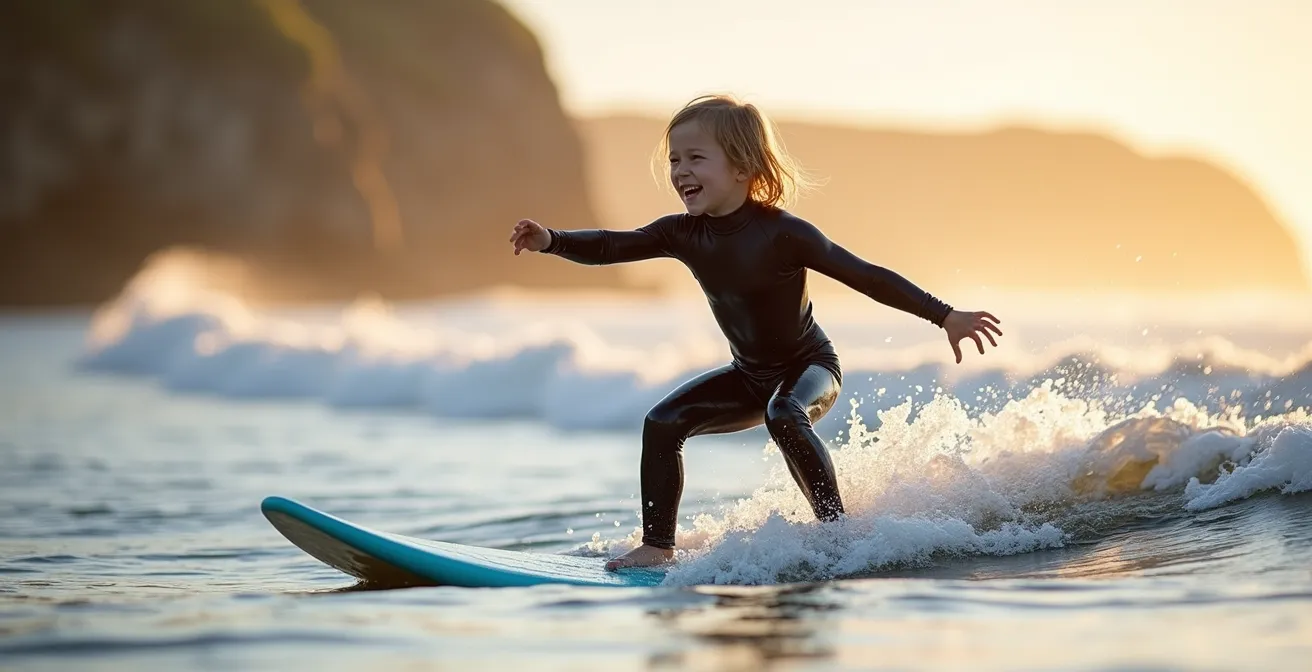 L’image est parfaite : votre enfant, sourire aux lèvres, glissant sur sa première vague sous le soleil breton. Mais derrière cette carte postale se cache souvent l’appréhension des parents. Le surf est-il trop dangereux ? Mon enfant va-t-il avoir froid, peur ? Comment transformer cette envie en une expérience positive et mémorable ? Beaucoup pensent qu’il suffit de louer une planche et de se jeter à l’eau, mais cette approche mène souvent à la frustration et à l’abandon. La clé du succès n’est pas seulement dans le geste technique, mais dans tout ce qui l’entoure.